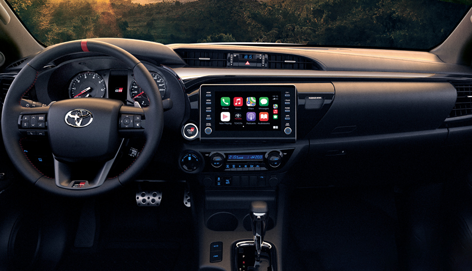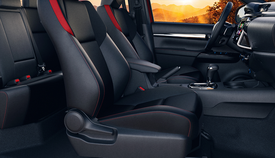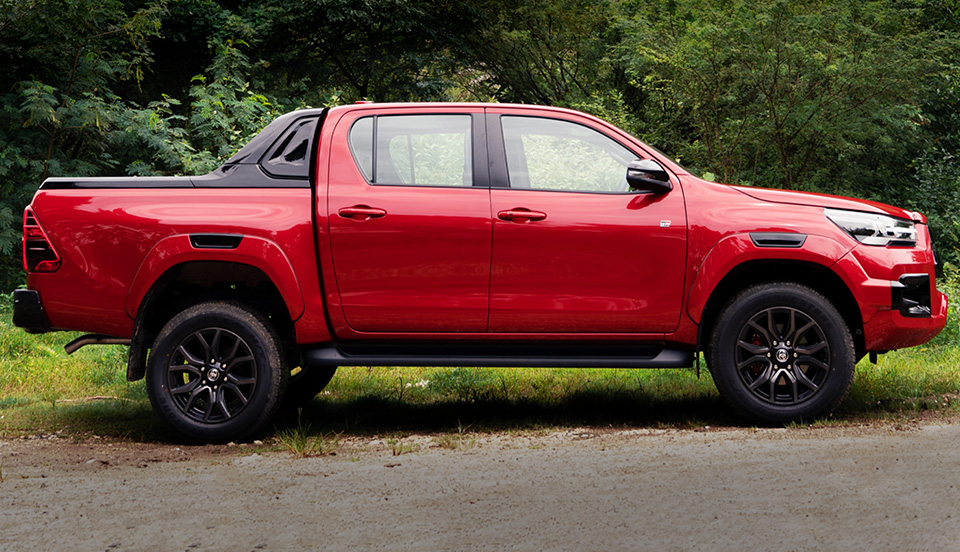 The Hilux GR Sport delivers excitement on and off the road with its wide-tread body and engine power-up.